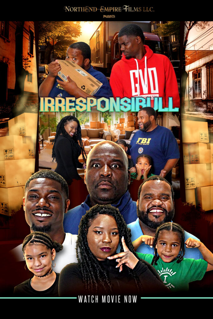 NorthEnd Empire Films LLC presents “Irresponsibull” movie. Allen is ready to settle down. Only his girlfriend Theresa doesn’t think he’s anywhere close to being responsible enough to start a family. When an unexpected opportunity arises for Allen to keep Theresa’s nephew and niece (Brian and Britt) and prove his maturity, he jumps to it…without knowing these two kids are not your average youngsters. Marcus is a low level scam artist that works for his uncle, the most “dangerous construction boss” in Chicago. He continues to screw up job after job and is desperate to show his uncle/boss that he can be responsible and counted on in the family business. The boss gives him just one more chance to prove himself. Then, the most unlikely of events happens, causing a chance meeting of Allen and Marcus and starting a downward spiral like no other. Can any of these men make it out and show that they are indeed NOT Irresponsibull?